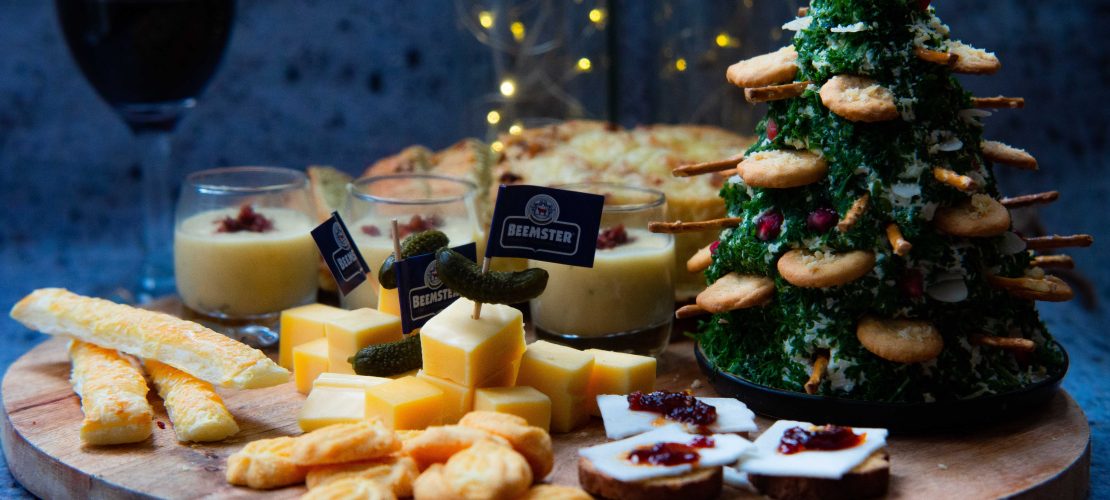 - Decorate the tree with the Royaal biscuits, salted sticks and shaved almonds. You can also use the almonds to create a star for on top of the tree. Pour the pomegranate over the tree and sprinkle more freshly chopped parsley on the plate and add some freshly grated Beemster Classic or X-O-.
